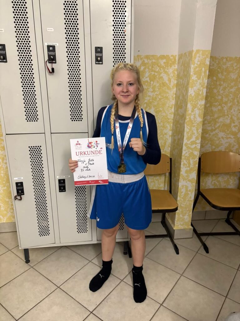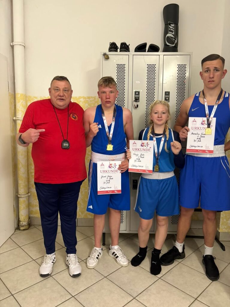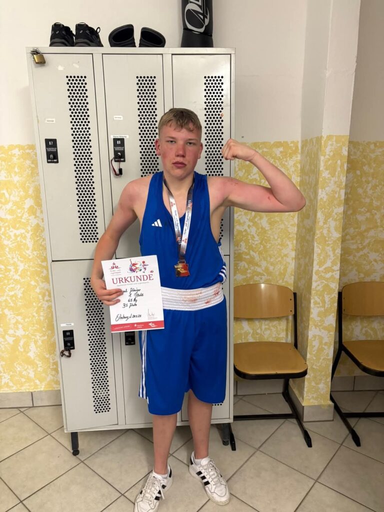 Kinder- und Jugendspiele am 24. Mai 2025 in EilenburgBei den diesjährigen Kinder- und Jugendspielen in Eilenburg zeigten unsere drei jungen Sportler beeindruckende Leistungen im Ring – und das trotz teilweise deutlich älterer und schwererer Gegner. Jeder einzelne Kampf war eine starke Vorstellung unseres Teams und zeugte von großem Mut, Technik und Kampfgeist.Besonders hervorheben möchten wir Maximilian Freese, der nach einer dreimonatigen Verletzungspause – verursacht durch einen Fußbruch – erstmals wieder in den Ring zurückkehrte. Nicht nur sein Comeback war bemerkenswert, sondern auch seine körperliche Entwicklung: Mit viel Disziplin, Fleiß und eisernem Willen hat er es geschafft, von 96 kg auf 82 kg herunterzutrainieren. Die neue Gewichtsklasse scheint ihm hervorragend zu liegen – eine absolute Spitzenleistung, auf die er sehr stolz sein kann!Unsere Victoria Kahle hatte leider keine Gegnerin und konnte daher nicht antreten. Dennoch war sie vor Ort, bereit und hochmotiviert – allein das zeigt ihren Einsatzwillen und ihre sportliche Einstellung.Ein weiteres Highlight war Freyjas erster Sparringskampf vor Publikum. Gegen eine größere Rechtauslegerin zeigte sie eine tolle Leistung. Beherzt und mit großem Ehrgeiz ging sie in den Kampf und konnte mit klaren Treffern überzeugen. Ein sehr gelungener Einstieg, auf den sich aufbauen lässt!Vincent trat gegen einen deutlich älteren Gegner an – doch davon ließ er sich nicht beeindrucken. Mit überlegener Kampfesführung bestimmte er von der ersten Runde an das Geschehen im Ring und konnte den Kampf klar für sich entscheiden. Eine starke Vorstellung!Als Präsident und Cheftrainer des Vereins bin ich überaus stolz auf die Entwicklung und die gezeigten Leistungen unserer Athletinnen und Athleten. Es ist beeindruckend zu sehen, mit wie viel Herzblut und Engagement unsere jungen Sportler in den Ring steigen. Weiter so!